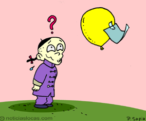 La pequeña Alice Maines ya había olvidado su globo y abandonado cualquier esperanza de ganar el concurso escolar de globos ante la desaparición sin rastro alguno de la esfera volátil liberada el 15 de julio en el jardín escolar. En realidad, el premio era para quien devoldiera el globo con una de las notas que lo acompañaban y en la cual se prometía una visita gratuita al Zoológico de Chester, cortesía de la Escuela Primaria de Flixton. Cuando ya el concurso se había dado por cerrado, una carta llegó desde la ciudad china de Guangzhou, en la cual un individuo identificado como Xie Yufei aseguraba haber encontrado el globo cerca de su casa, a unos 10 mil kilómetros del punto de partida. Los expertos en meteorología aún no logran explicarse cómo pudo llegar tan lejos un pequeño globo inflado únicamente con helio y mientras algunos lectores del Times -el diario que reporta la noticia- la consideran una "historia romántica" otros, más escépticos, se preguntan si el señor Xie no habrá estado recientemente en Inglaterra. Fuente: Noticias Locas | |